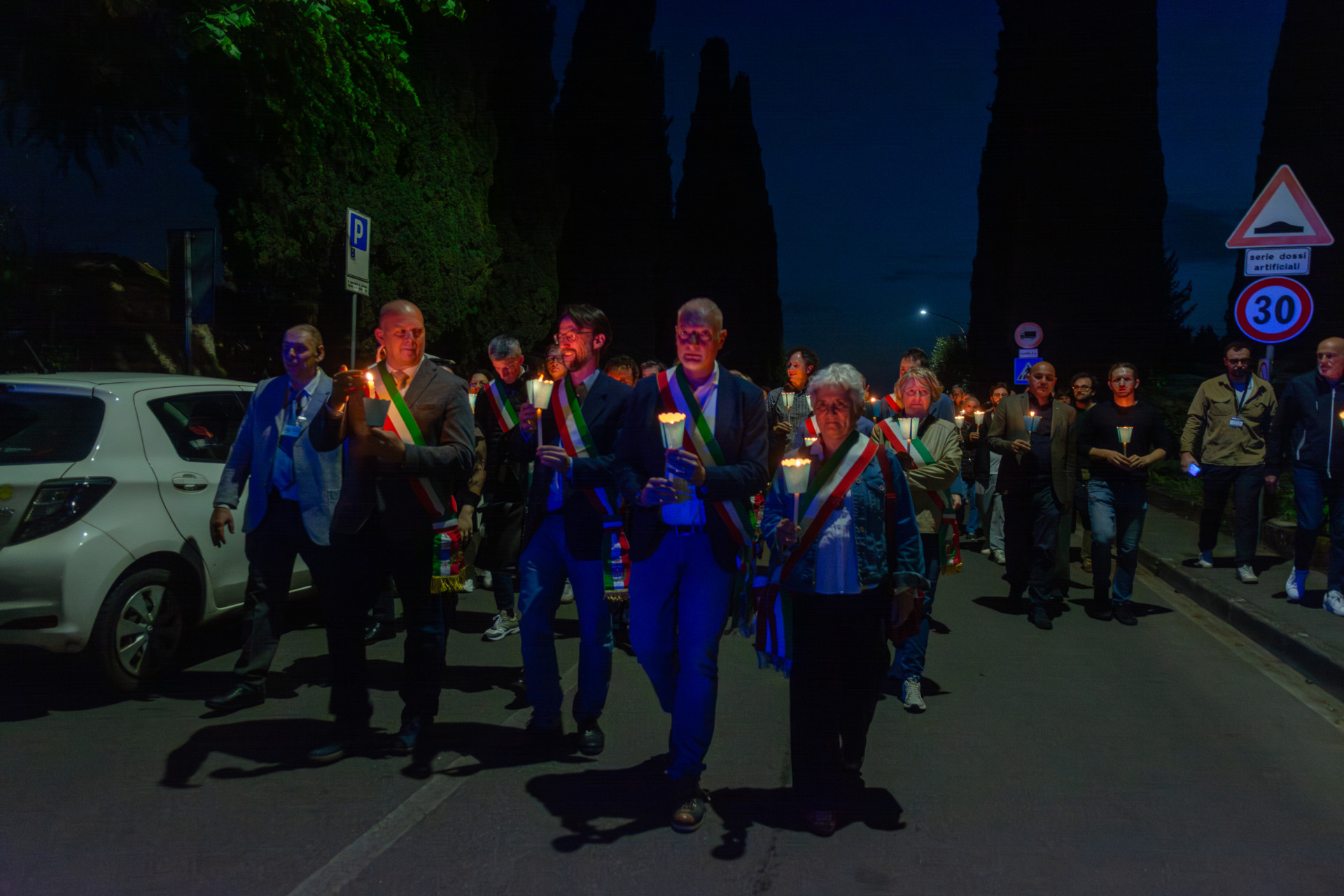 Un momento simbolico significativo è stata la fiaccolata sul Ponte San Michele, con due cortei che si sono incontrati al centro del ponte, rappresentando l’idea di unione.