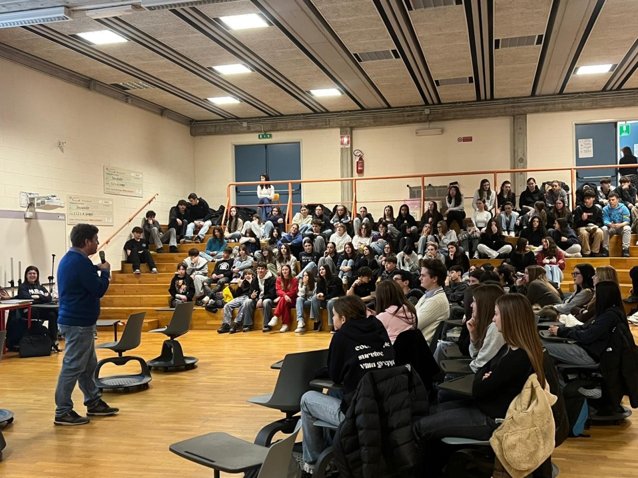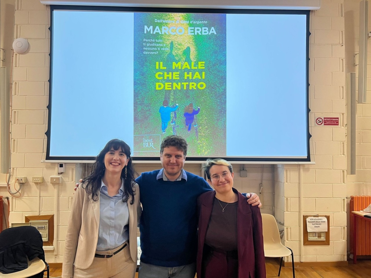 Nella seconda parte dell’incontro, Erba ha risposto a numerose domande degli studenti riguardo al romanzo: come ha fatto a immedesimarsi in personaggi di 15 anni, i messaggi che vorrebbe trasmettere ai giovani lettori e i temi che affronta nelle sue opere, in particolare le fragilità adolescenziali.